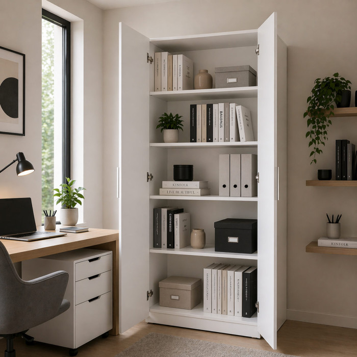 BAMBEY - Armadio 2 ante e 5 ripiani L69xP35xH200 cm Bianco Lucido