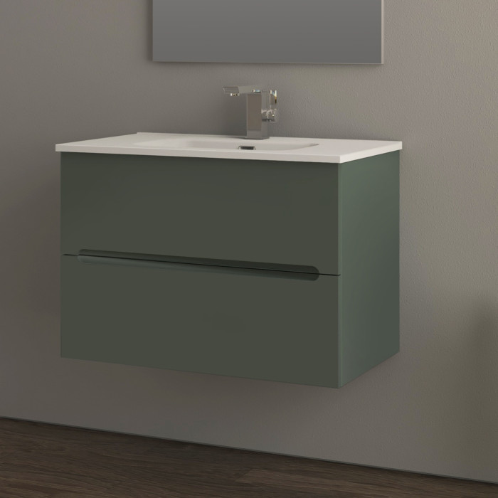 KIM - Mobile bagno sospeso 80 cm 2 cassetti soft-close, verde opaco, bagni moderni, lavabo in...