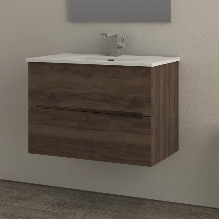 KIM - Mobile bagno sospeso 80 cm 2 cassetti soft-close, legno noce, bagni moderni, lavabo in...