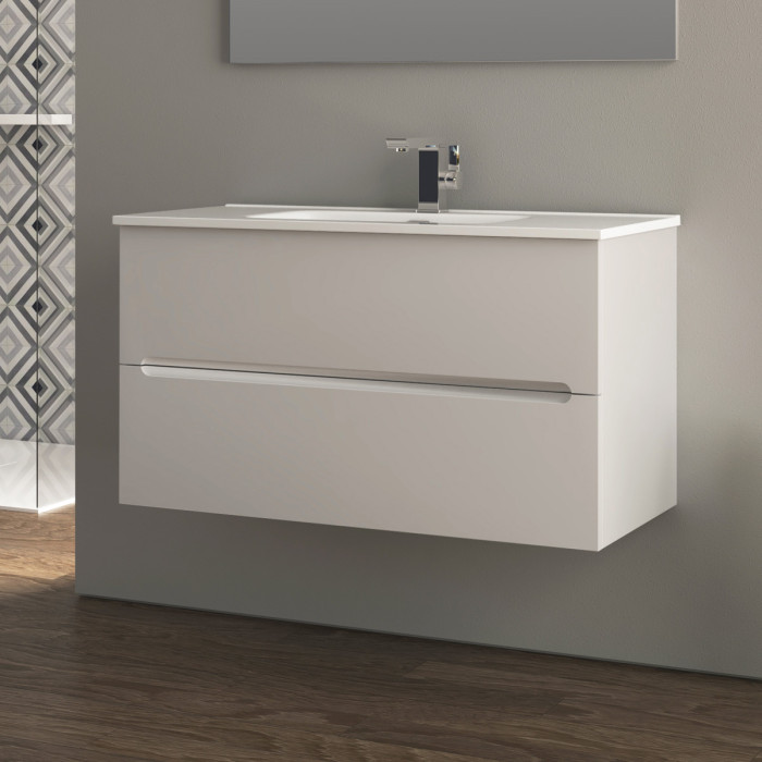 KIM - Mobile bagno sospeso 100 cm 2 cassetti soft-close, bianco opaco, bagni moderni, lavabo in...
