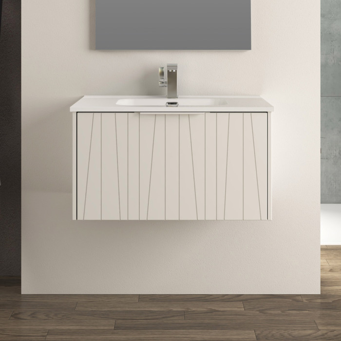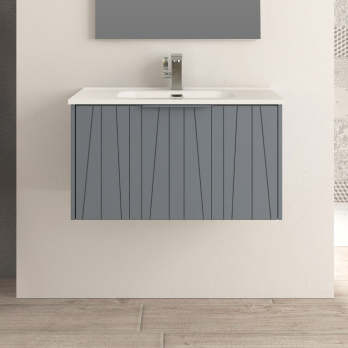 HARRY - Mobile bagno sospeso 80 cm cassettone con decoro, bagni moderni, lavabo in ceramica e...