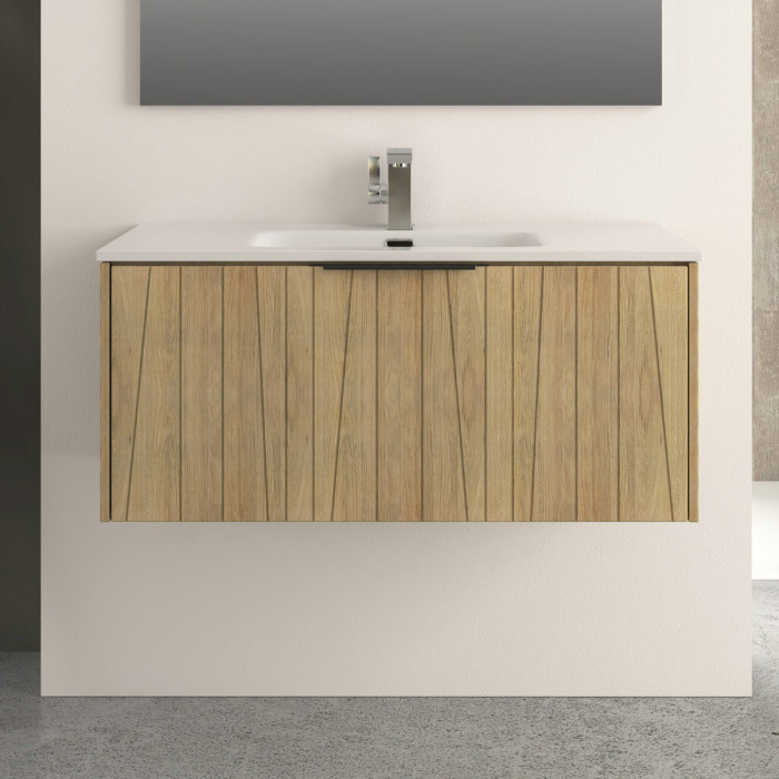 HARRY - Mobile bagno sospeso 100 cm cassettone con decoro, bagni moderni, lavabo in ceramica e...