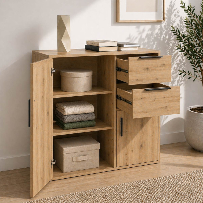 BAMBEY - Mobile multiuso 2 ante 2 cassetti L72 x P35 x H88 cm Rovere Artisan
