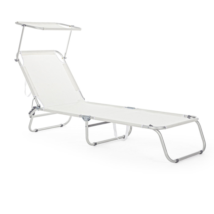 Cross - Lettino relax sdraio per giardino mare esterni pieghevole con tettuccio Bianco