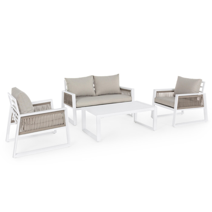 CAPTIVA - Set salotto giardino 4 posti con tavolino in alluminio Bianco e cuscini imbottiti