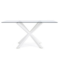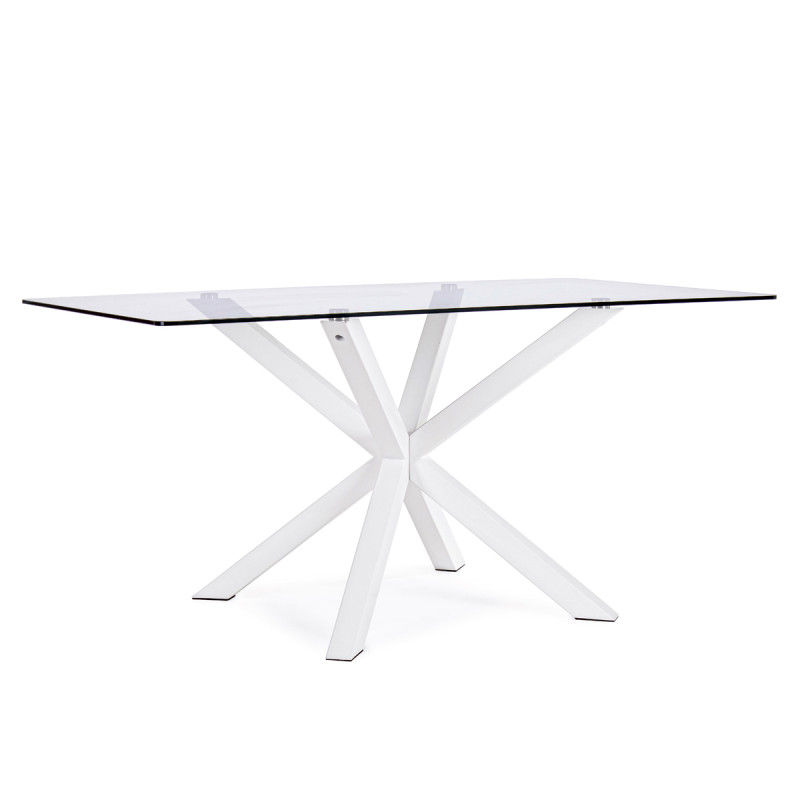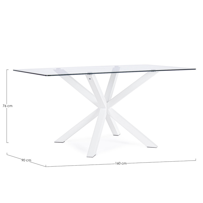 MAY - Tavolo da Pranzo Rettangolare L160xP90xH76 cm piano in vetro e gambe in acciaio bianco, Base a Ragno Design Moderno