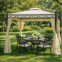 GAZEBO DA GIARDINO MANAUS CON STRUTTURA IN METALLO E TENDE LATERALI ECRU' 3X4 MT.
