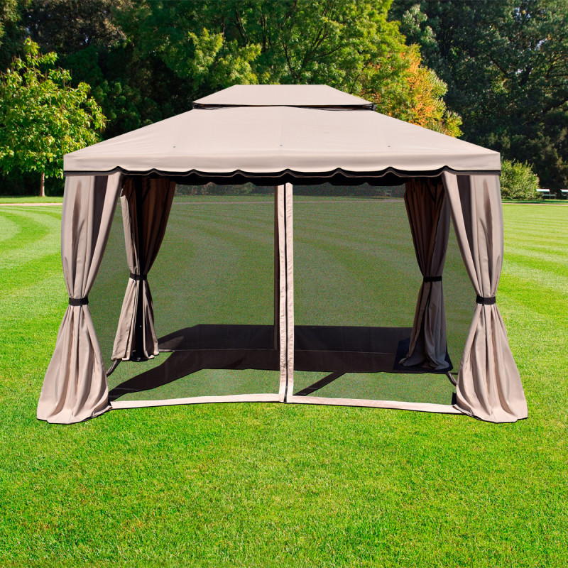 Gazebo in alluminio FORTALEZA 3 X 3 MT. con zanzariere e teli laterali richiudibili beige/marrone