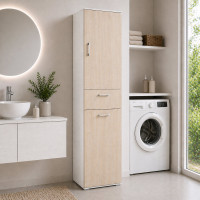Mobile colonna lavanderia L45xP32xH195 cm LAUNDRYCOMPOS Bianco/Rovere