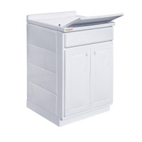 Disponibile in diverse misure sia nella variante con ante che nella versione salva-spazio con chiusura a serranda a scorrimento laterale, dotato di asse in resina e sifone standard con doppia uscita.
