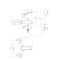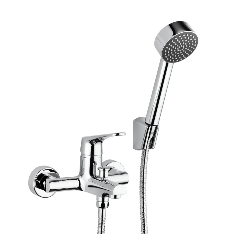 ATTILA - Miscelatore bagno in ottone esterno vasca con doccetta e supporto cromo