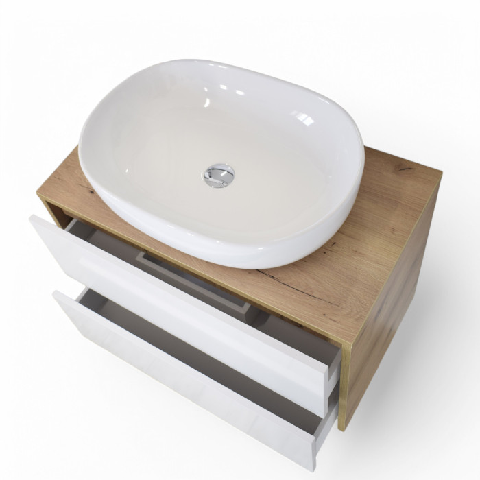 SHAPE PLUS - Mobile bagno sospeso cm 80 lavabo appoggio apertura push specchio con luce led rovere gransasso - bianco