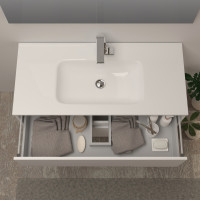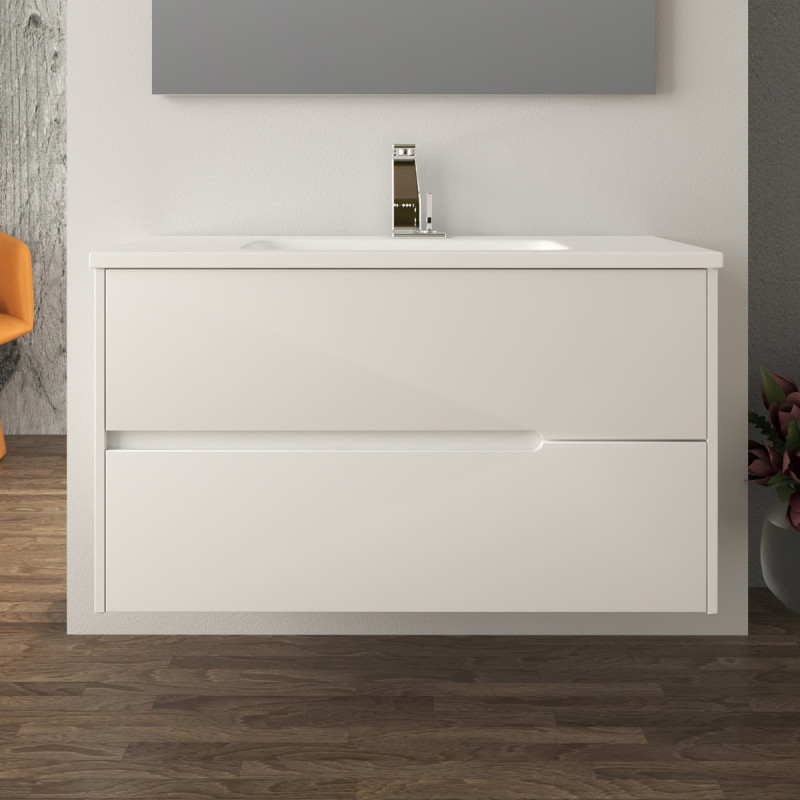 MOBILE BAGNO SOSPESO PETER 100 CM 2 CASSETTI CON LAVABO SPECCHIO E LUCE LED COLORE BIANCO OPACO