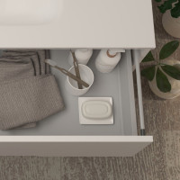 Il Mobile Bagno Sospeso Peter 100 cm è la scelta ideale per chi desidera un arredo bagno elegante, moderno e funzionale, disponibile nel colore bianco opaco e verde opaco, realizzato in MDF di alta qualità con rivestimento in PVC, resiste perfettamente all’umidità tipica degli ambienti bagno ed è facile da mantenere. I due ampi cassetti in metallo con chiusura rallentata e guide registrabili offrono grande capacità contenitiva e praticità, garantendo un’apertura fluida e silenziosa. Le maniglie a gola sono integrate nel design per un’estetica pulita e contemporanea. Il lavabo in ceramica si distingue per la sua resistenza e facilità di pulizia, mentre lo specchio filo lucido con applique LED cromata da 30 cm completa il set, donando luminosità e funzionalità all’ambiente.