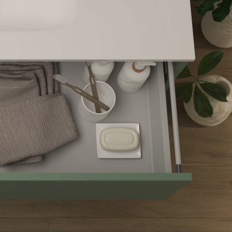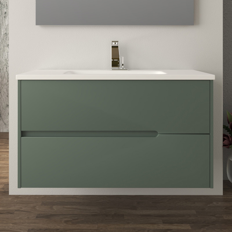 MOBILE BAGNO SOSPESO PETER 100 CM 2 CASSETTI CON LAVABO SPECCHIO E LUCE LED COLORE VERDE OPACO
