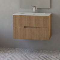 MOBILE BAGNO SOSPESO BEAR 100 CM 2 CASSETTI CON LAVABO SPECCHIO E LUCE LED COLORE ROVERE TABACCO