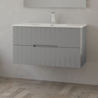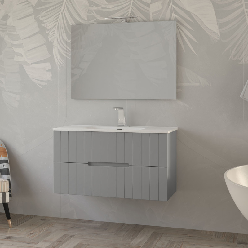 MOBILE BAGNO SOSPESO BEAR 100 CM 2 CASSETTI CON LAVABO SPECCHIO E LUCE LED COLORE GRIGIO NUVOLA