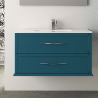 MOBILE BAGNO SOSPESO TED 100 CM 2 CASSETTI CON LAVABO SPECCHIO E LUCE LED COLORE BLU PETROLIO
