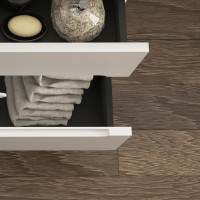 Disponibile in diverse finiture : bianco opaco, effetto noce e verde opaco, si adatta perfettamente a ogni stile d’arredo, dal minimalista al contemporaneo. I cassetti a chiusura rallentata (soft-close) con maniglia a gola integrata assicurano comfort, silenziosità e un’estetica pulita senza interruzioni visive.