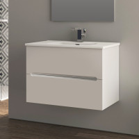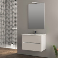 MOBILE BAGNO SOSPESO KIM 80 CM 2 CASSETTI CON LAVABO SPECCHIO E APPLIQUE LED COLORE BIANCO OPACO