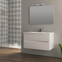 MOBILE BAGNO SOSPESO KIM 100 CM 2 CASSETTI CON LAVABO SPECCHIO E APPLIQUE LED COLORE BIANCO OPACO