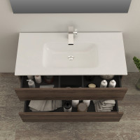 MOBILE BAGNO SOSPESO KIM 100 CM 2 CASSETTI CON LAVABO SPECCHIO E APPLIQUE LED COLORE EFFETTO LEGNO NOCE