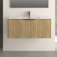 MOBILE BAGNO SOSPESO HARRY 100 CM 1 CASSETTONE CON LAVABO SPECCHIO E APPLIQUE LED EFFETTO LEGNO ROVERE TABACCO