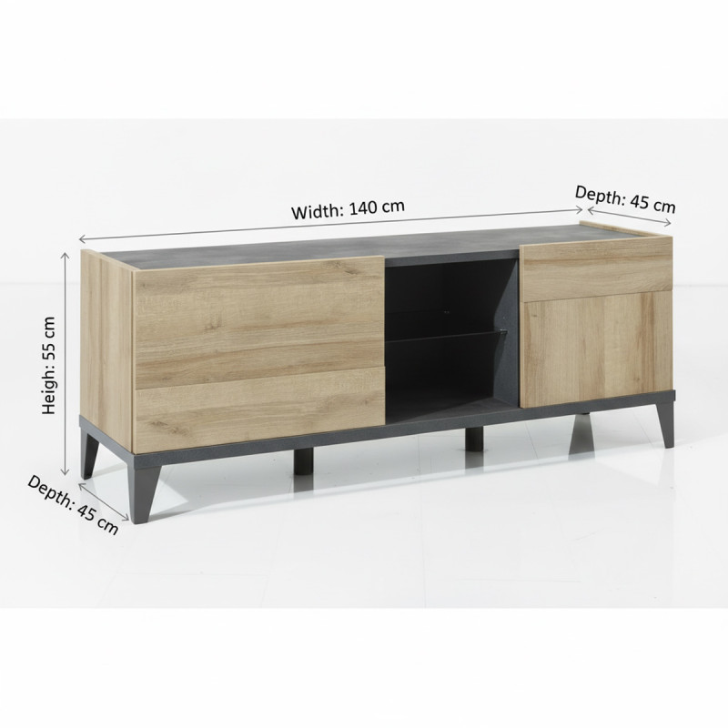 BLOOM - Mobile Porta Tv con Ante Rovere e Struttura Antracite Vani Contenitore L140 x P45 x H55 cm. Design Moderno
