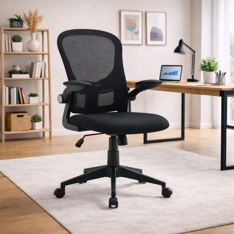 Sedia da Ufficio Ergonomica Taho con Braccioli Ribaltabili, Schienale in Rete Traspirante e Supporto Lombare – Altezza Regolabile – colore Nero