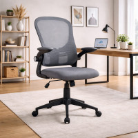 Sedia da Ufficio Ergonomica Taho con Braccioli Ribaltabili, Schienale in Rete Traspirante e Supporto Lombare – Altezza Regolabile – colore Grigio