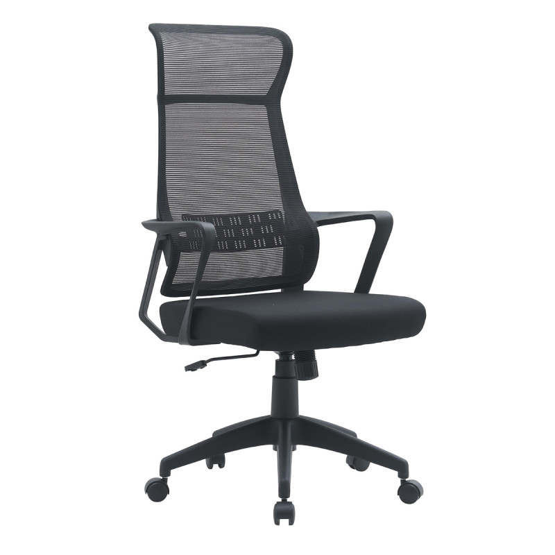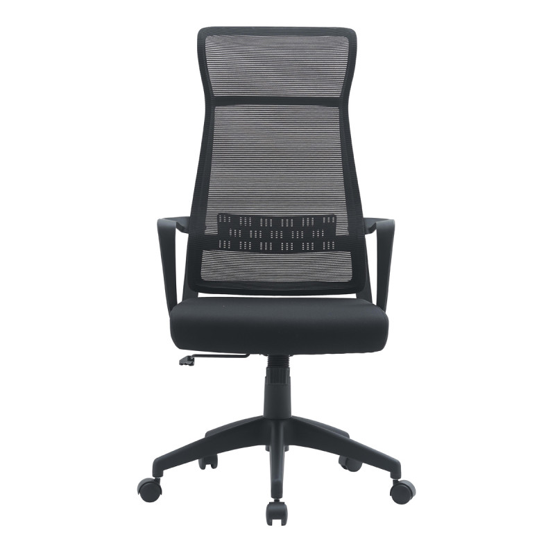 Lo schienale alto, realizzato in polipropilene e rivestito in tessuto a rete 100% poliestere, favorisce una ventilazione ottimale e aiuta a mantenere una postura corretta. È dotato di un supporto lombare integrato, studiato per ridurre lo sforzo sulla schiena e migliorare il comfort posturale.