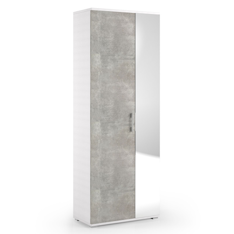 Armadio scarpiera 2 ante texture 3d 4 ripiani L72xP37xH195 cm COMPOS Bianco/Cemento con specchio