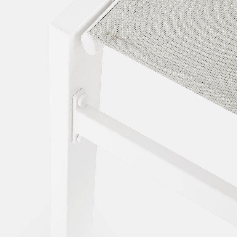 La struttura in alluminio verniciato lo rende resistente agli agenti atmosferici e leggero da spostare. Il tessuto textilene trapuntato, teso in modo uniforme, garantisce una seduta comoda, ergonomica e traspirante. Lo schienale è regolabile in diverse posizioni, così da adattarsi perfettamente a momenti di lettura, relax o sole. Dotato di ruote posteriori integrate, è facile da movimentare, senza compromettere la stabilità.