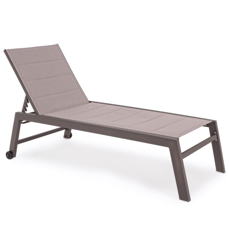 La struttura in alluminio verniciato lo rende resistente agli agenti atmosferici e leggero da spostare. Il tessuto textilene trapuntato, teso in modo uniforme, garantisce una seduta comoda, ergonomica e traspirante. Lo schienale è regolabile in diverse posizioni, così da adattarsi perfettamente a momenti di lettura, relax o sole. Dotato di ruote posteriori integrate, è facile da movimentare, senza compromettere la stabilità.