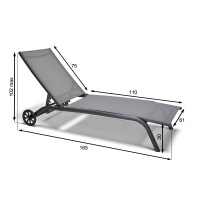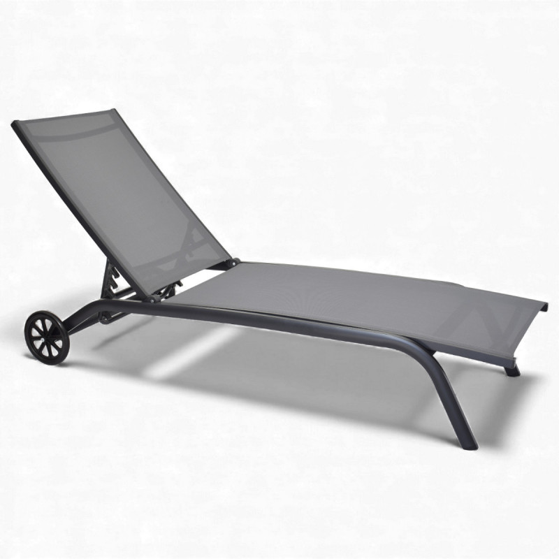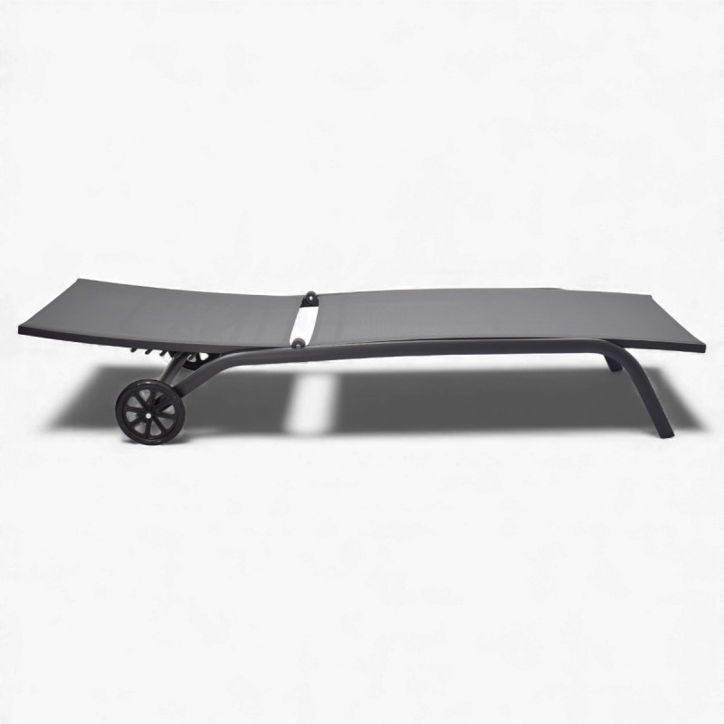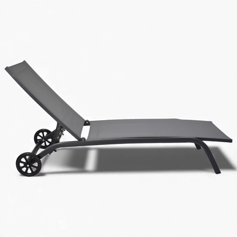 Lettino Prendisole Elly da Giardino in Alluminio con Textilene, con Ruote, Impilabile colore antracite