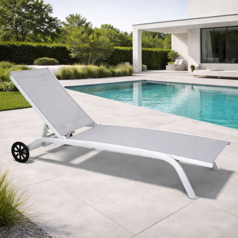 La presenza delle ruote posteriori permette di spostare il lettino facilmente da una zona all’altra, mentre la struttura in alluminio lo rende resistente alla ruggine e perfetto per l'uso outdoor. Inoltre, il lettino è impilabile, caratteristica essenziale per chi ha necessità di ottimizzare gli spazi, come hotel, piscine e strutture ricettive.