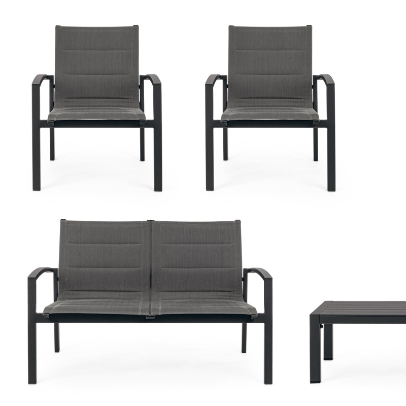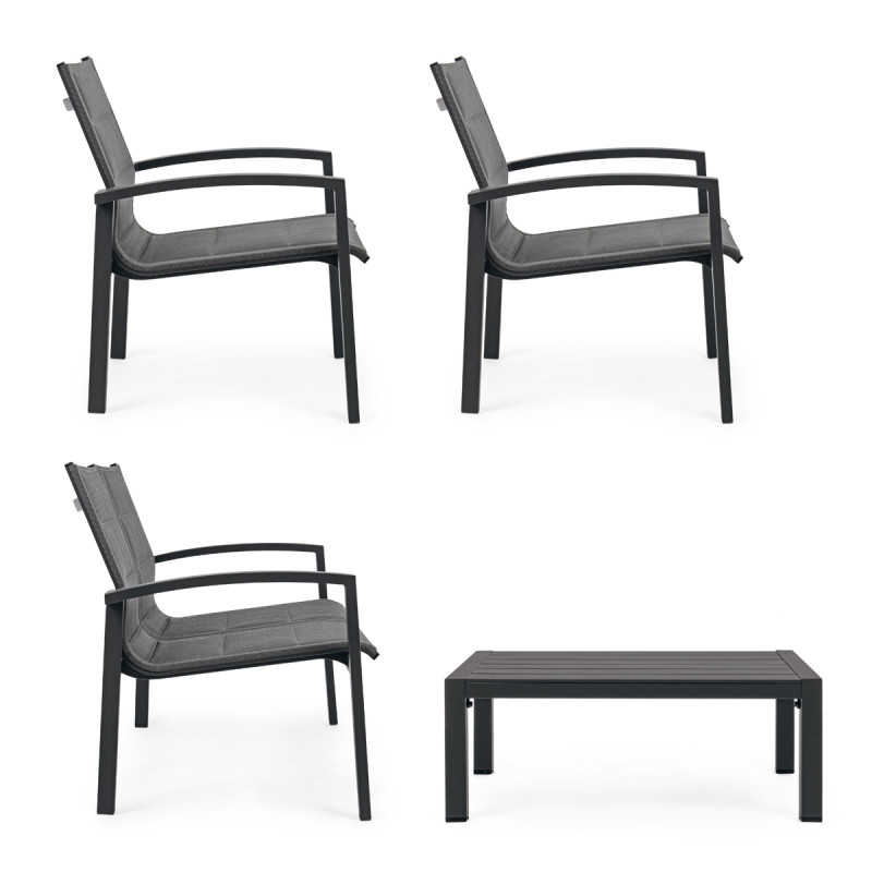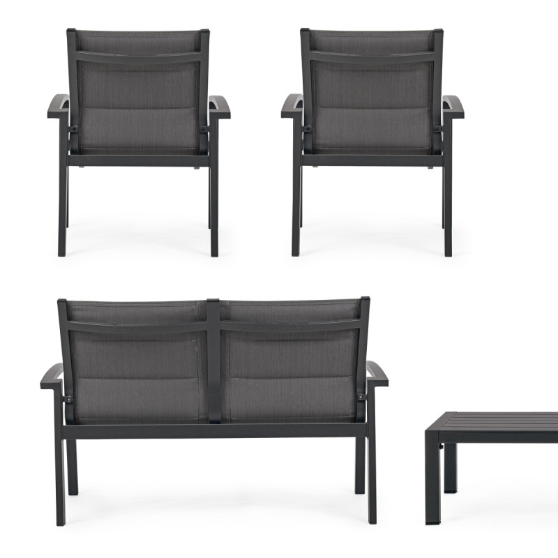 LUKEN - Set salotto giardino con tavolino in textilene e alluminio 4 posti LUKEN Antracite