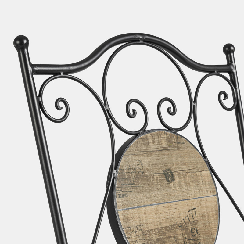 Il set Kansas è la soluzione ideale per ambienti outdoor dal gusto country chic. Il tavolo rotondo e le due sedie pieghevoli hanno una struttura in metallo nero decorata con motivi a ricciolo, mentre sedute e schienali sono in effetto legno naturale. Il design curato e compatto rende questo set perfetto per piccoli spazi come balconi, verande o angoli di giardino.