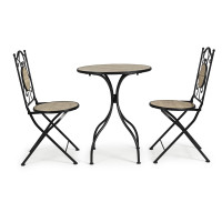 KANSAS - Set bistrot tavolo con 2 sedie pieghevoli in acciaio verniciato e decoro ceramica stile industrial