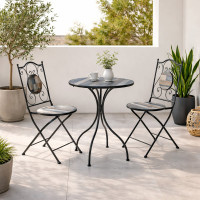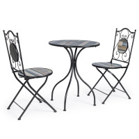 HOUSTON - Set bistrot tavolo con 2 sedie pieghevoli in acciaio verniciato e decoro ceramica stile rustico