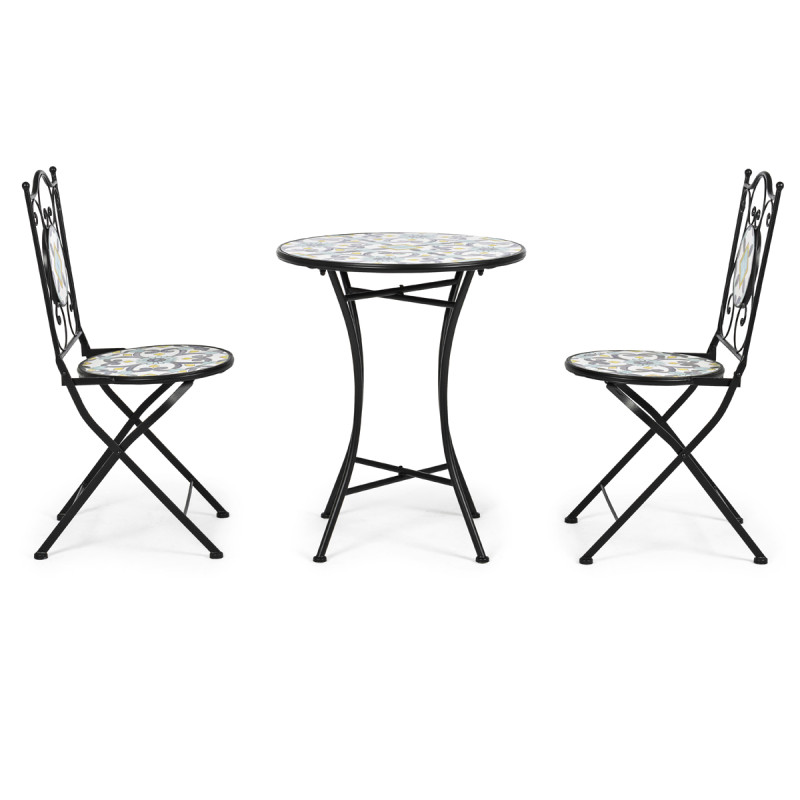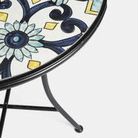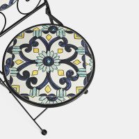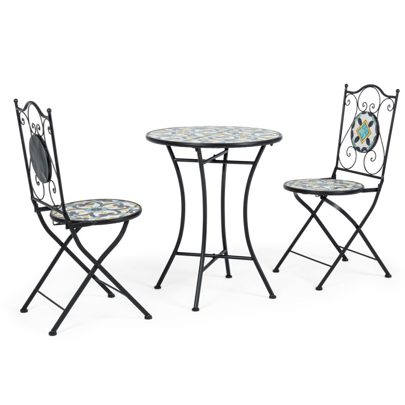 POSITANO - Set bistrot tavolo con 2 sedie pieghevoli in acciaio verniciato e decoro maioliche stile mediterraneo