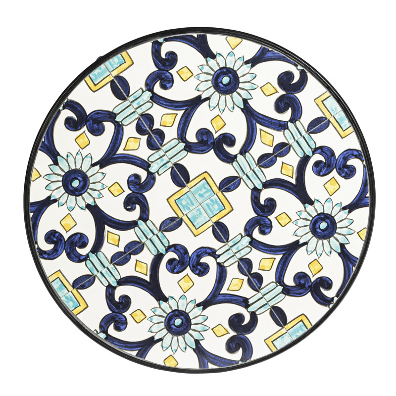 Il set da giardino Positano è un invito a godersi il relax all’aperto con un tocco di colore e artigianalità. Composto da un tavolo rotondo e due sedie pieghevoli in metallo verniciato, presenta piastrelle in ceramica decorate a mano su sedute e piano d'appoggio. La struttura robusta è arricchita da eleganti riccioli ornamentali, perfetta per creare un angolo bistrot in terrazzo o balcone.