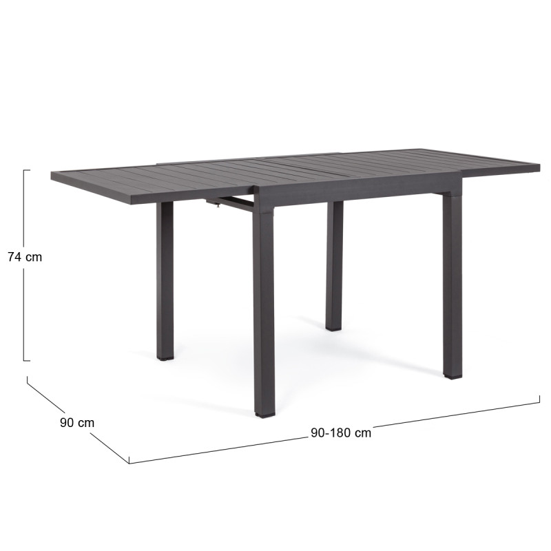 Tavolo quadrato allungabile in alluminio L90/180xP90xH74 cm HILL Antracite