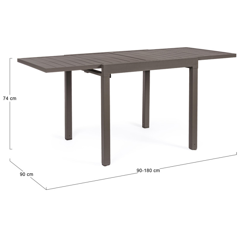 Tavolo quadrato allungabile in alluminio L90/180xP90xH74 cm HILL Coffee