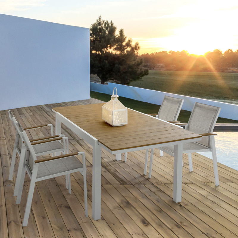ELLY - Tavolo da Giardino 160 Allungabile 240 cm in Alluminio – Doghe Effetto Legno Teak – Outdoor/Esterno - Bianco