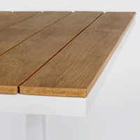 Disponibile nelle versioni bianco con doghe effetto teak o antracite con doghe effetto teak, il tavolo Elly si abbina facilmente a diversi stili di arredamento da esterno, offrendo sempre solidità, stile e comfort.