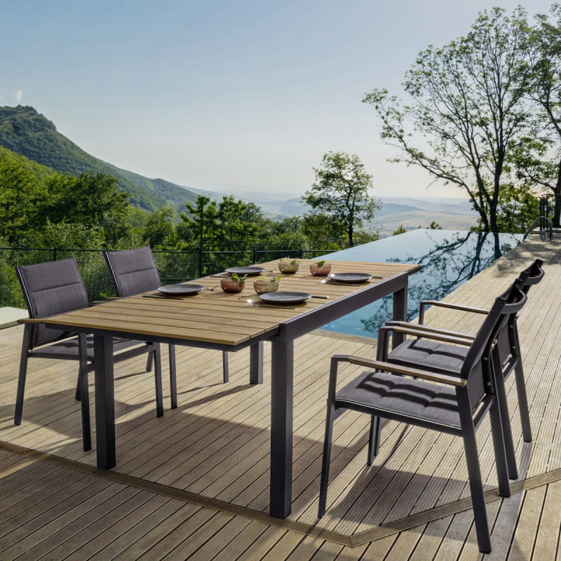 ELLY - Tavolo da Giardino 160 Allungabile 240 cm in Alluminio – Doghe Effetto Legno Teak – Outdoor/Esterno - Antracite