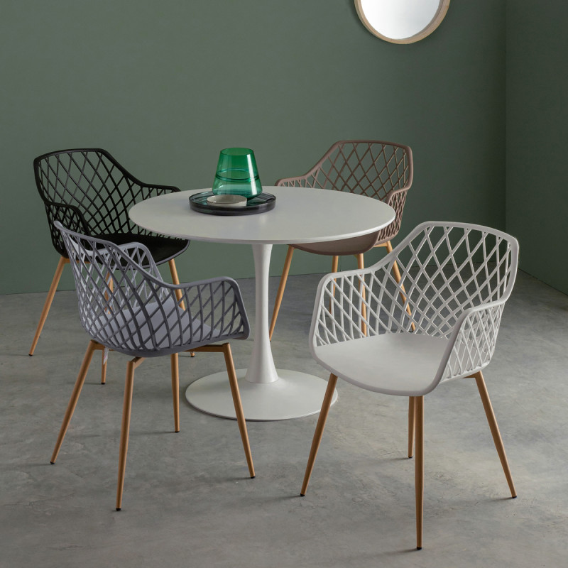 BLOOM - Tavolo pranzo tondo stile tulip Ø 100 x h75 cm top in mdf struttura in acciaio Bianco