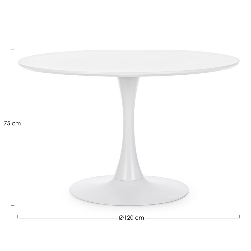 BLOOM - Tavolo pranzo tondo stile tulip Ø 120 x h75 cm top in mdf e struttura in acciaio Bianco